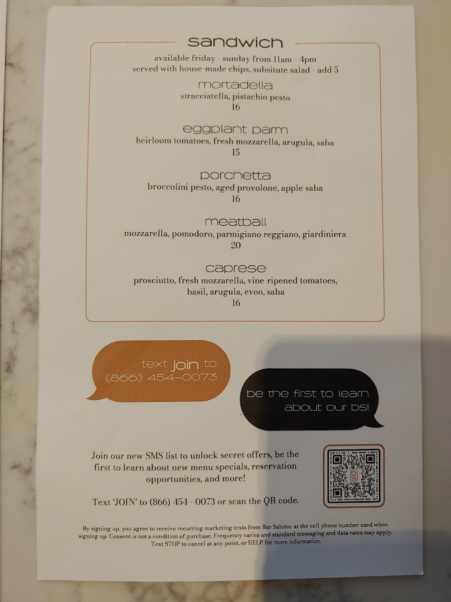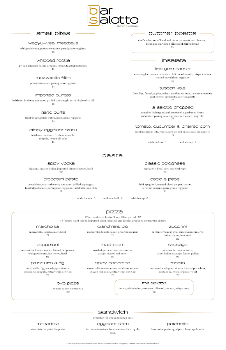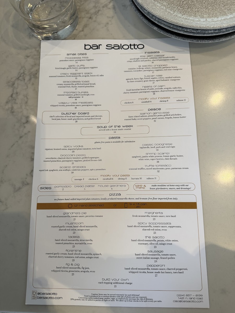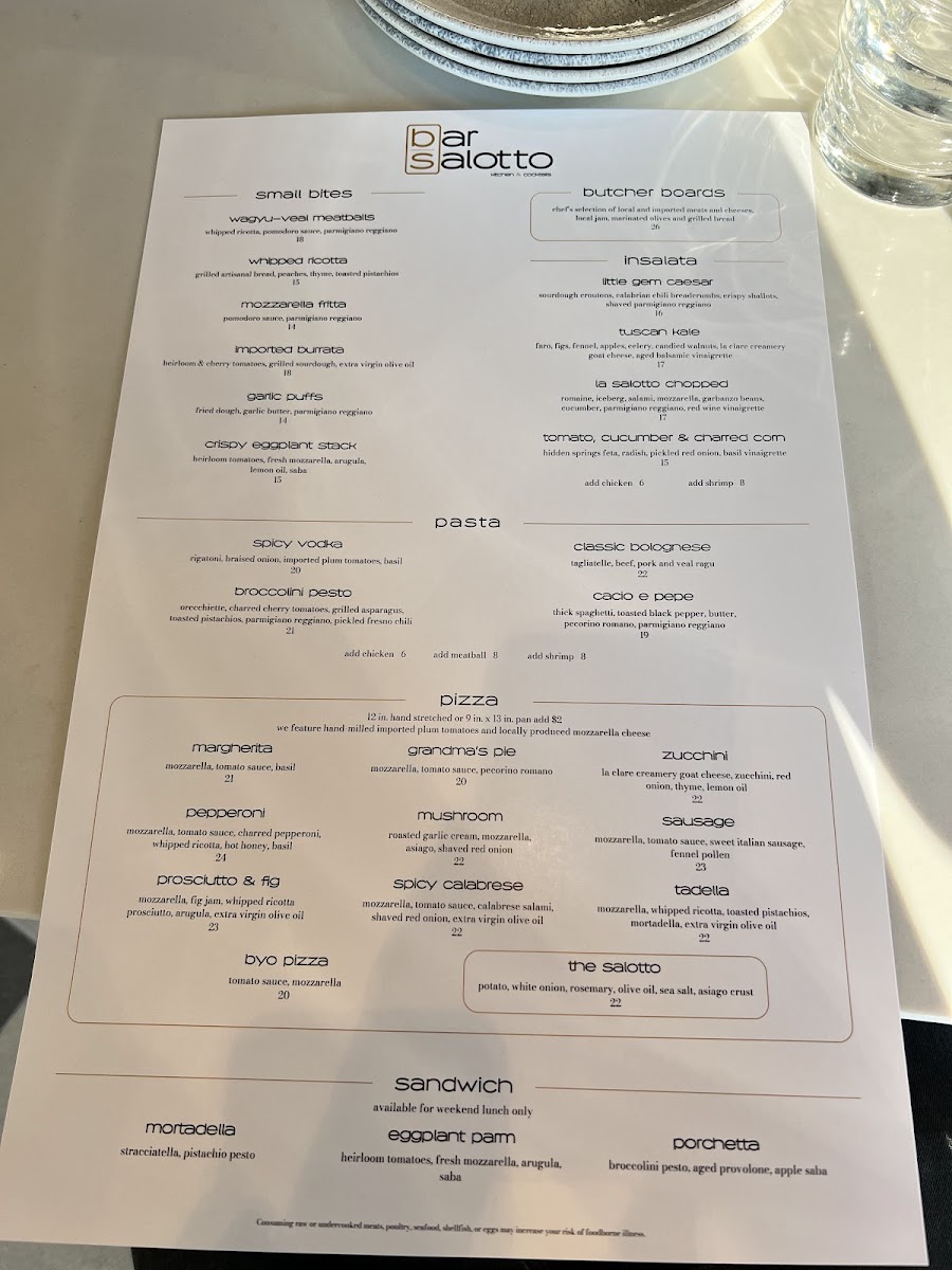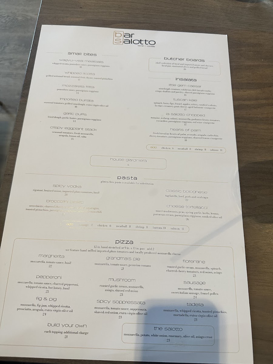 Whether stopping by for lunch, sharing a pizza with a group, or enjoying a quiet dinner, Bar Salotto’s menu feels thoughtful and approachable—a true reflection of its welcoming spirit and attention to detail.
